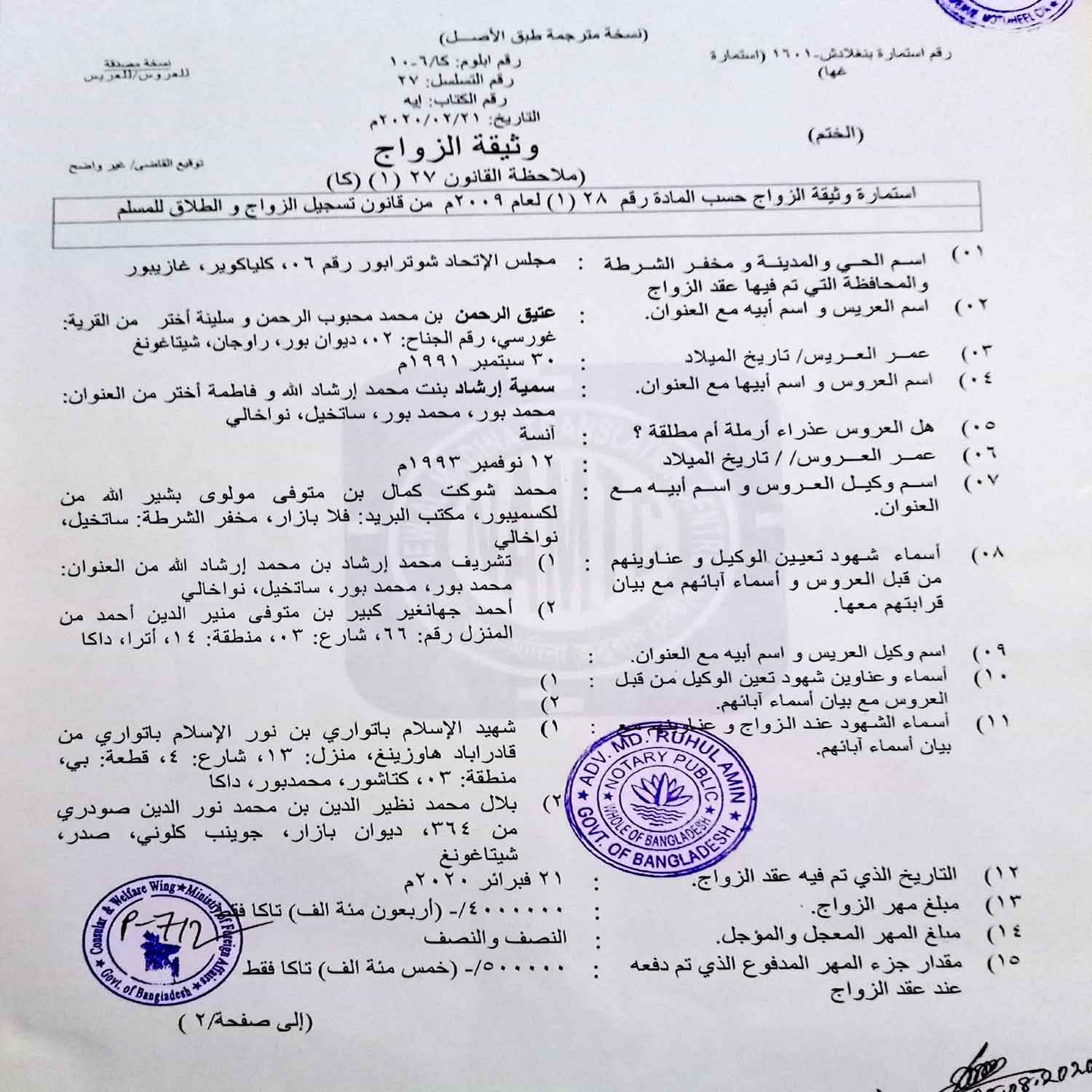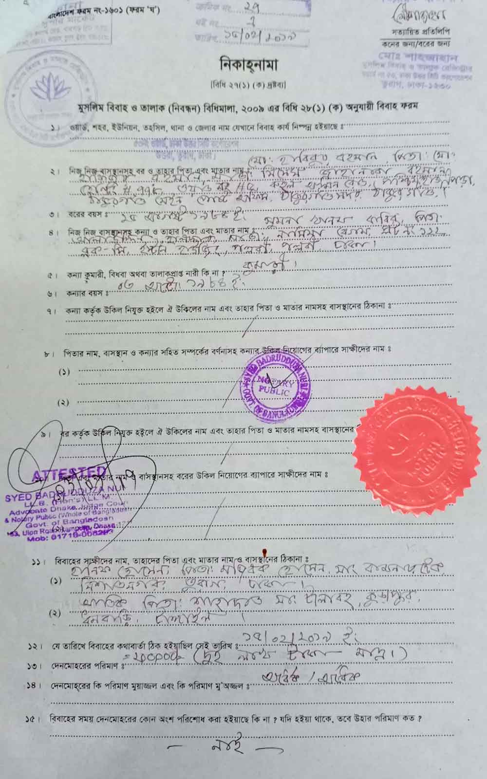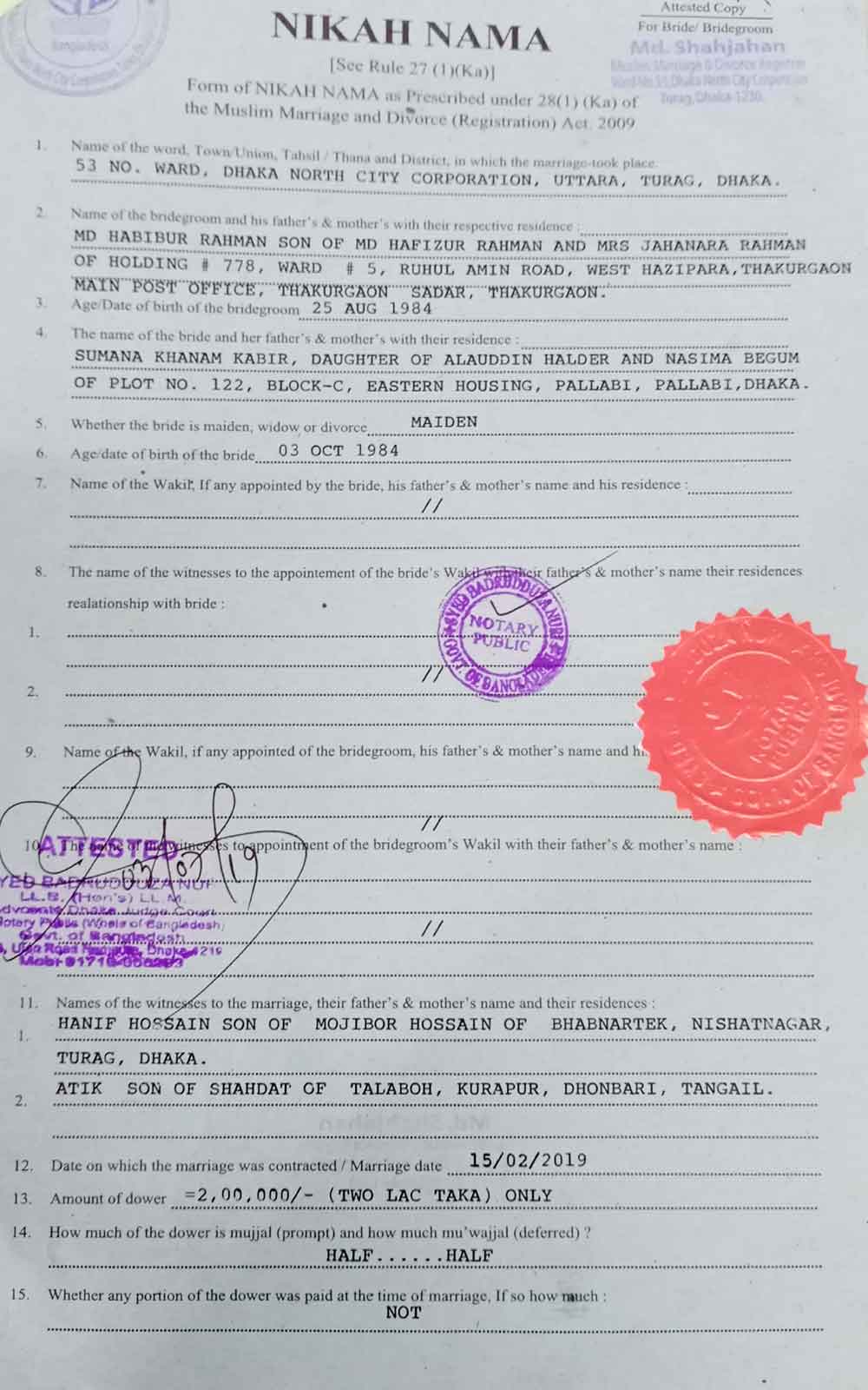 Marriage Certificate Part-1